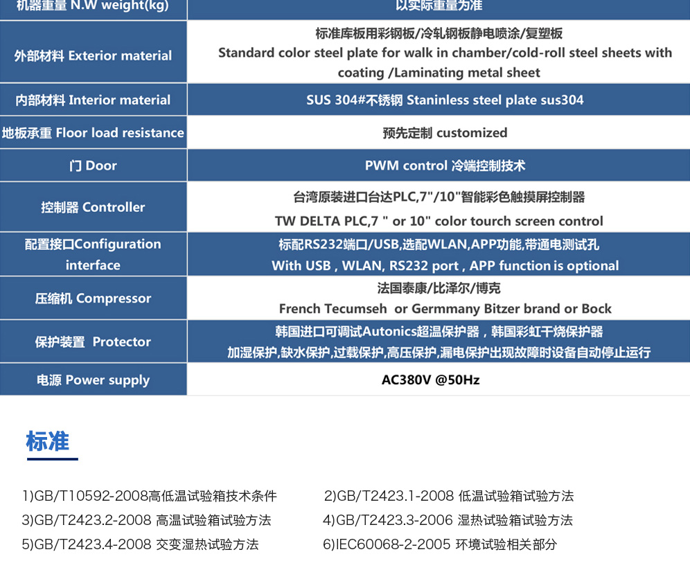 用途:步入式恒溫恒濕試驗室可為汽車、大型部件、大尺寸半成品和成品模擬特定的環境條件。如樣品評估、研發測試生產測試,加速壓力測試,可靠性測試,故障分析,以及其他需要環境模