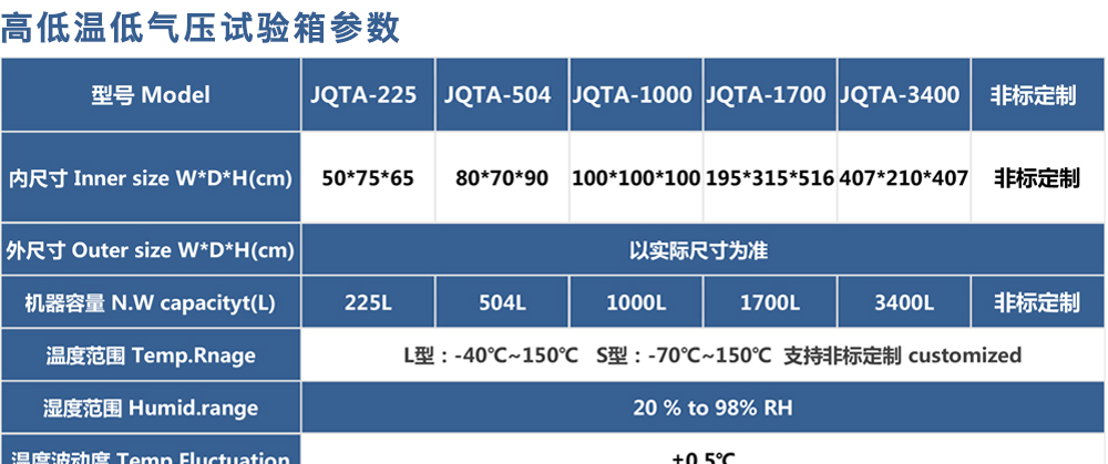 高空低氣壓試驗箱可以模擬高海拔、高空、(高原地區)氣候進行貯存運用、運輸可靠性試驗,并可同時對試件通電進行電氣性能參數的測試設備。適用于國防工業,航天工業自動化零組件,汽車部件,電池,平面顯示屏模組工業及相關產品料進行環境試驗 - 高溫試驗、低溫試驗、溫度變化試驗、低氣壓試驗、溫度高度試驗、低溫/低氣壓綜合試驗、高溫/低氣壓綜合試驗。