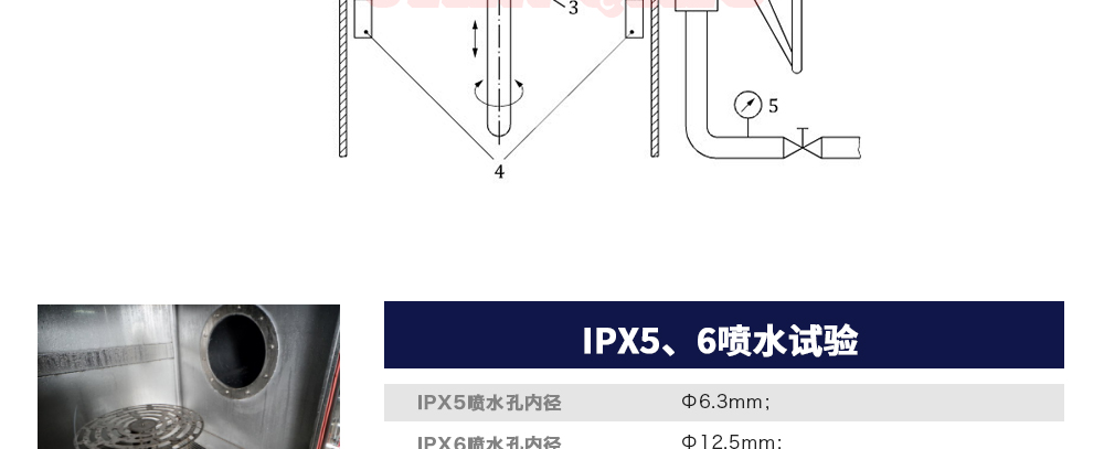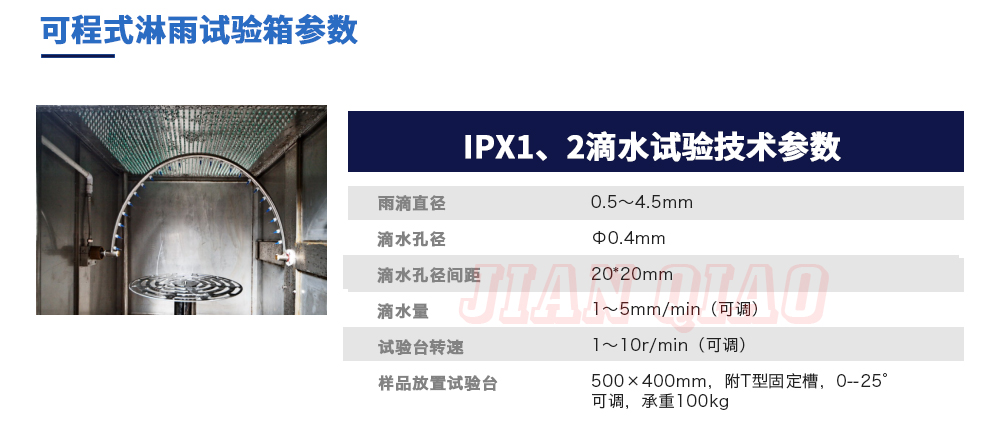 用途:可程式淋雨試驗(yàn)箱適用于電工電子產(chǎn)品(包括組件)、燈具照明產(chǎn)品、汽車摩托車零部件外殼和密封件等產(chǎn)品做外殼防護(hù)等級(jí)測(cè)試(IP 防水等級(jí)試驗(yàn)),模擬其產(chǎn)品在運(yùn)輸和使用期間可能受