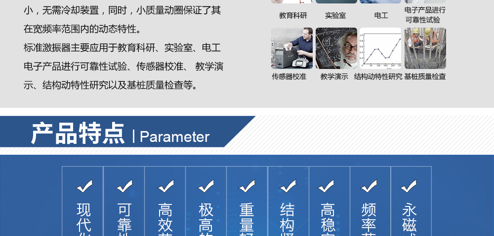 用途:標(biāo)準(zhǔn)激振器是利用永久磁鋼形成靜態(tài)磁場(chǎng),不需要額外的勵(lì)磁電源,簡(jiǎn)化了對(duì)功率放大器的要求,發(fā)熱量小,無(wú)需冷卻裝置,同時(shí),小質(zhì)量動(dòng)圈保證了其在寬頻率范圍內(nèi)的動(dòng)態(tài)特性。標(biāo)